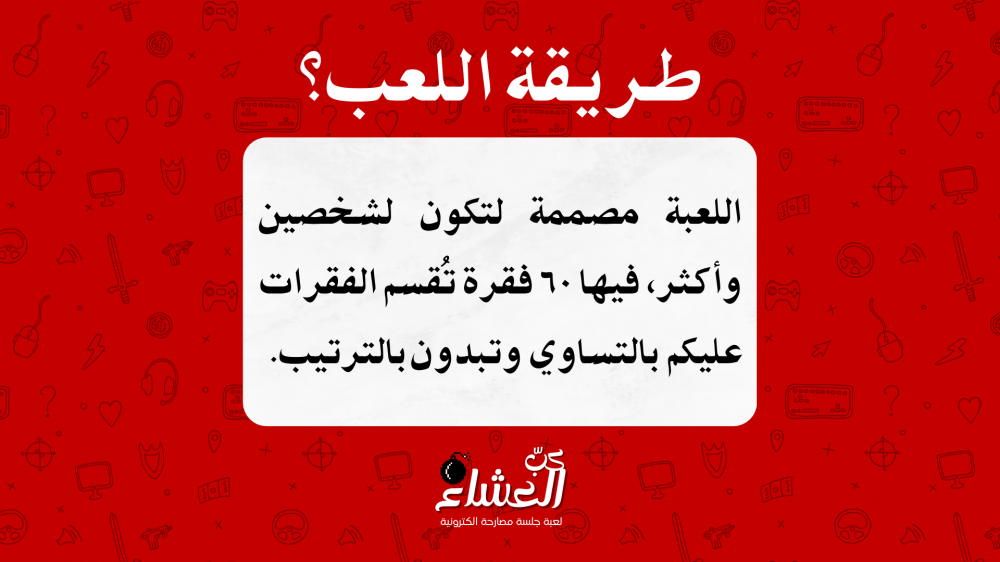 اللعبة مصممة لتكون لشخصين وأكثر، تُقسم الفقرات عليكم بالتساوي وتبدون تجاوبون بالترتيب.