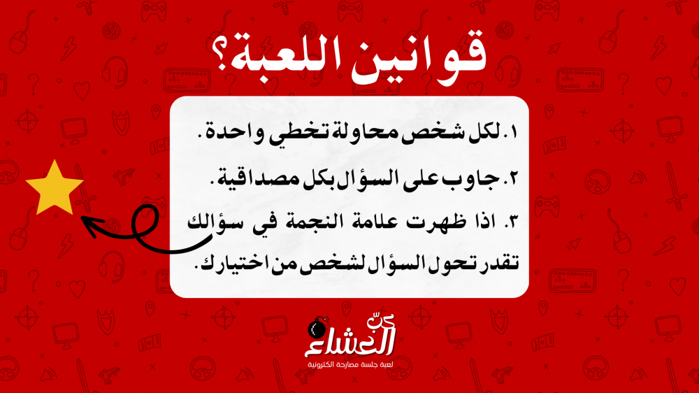 اللعبة مصممة لتكون لشخصين وأكثر، تُقسم الفقرات عليكم بالتساوي وتبدون تجاوبون بالترتيب.